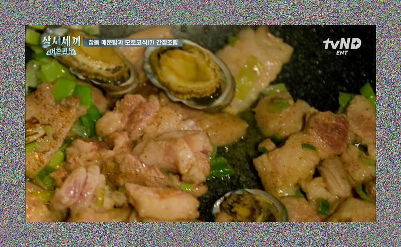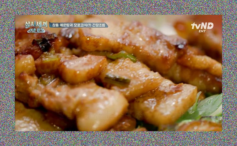 "저 요리 이름이 뭐예요?"라는 질문에 드디어 밝혀지는 "모로코식 돼지구이"의 정체! 이전의 쿠바식 요리와 혼동하는 해프닝도 잠시, 이 모로코식 돼지구이는 간장을 베이스로 한 조림이라는 설명이 이어집니다. "간장이 모로코?"라며 의아해하는 반응도 있었지만, "소이 소스는 다 있지 왜 없어, 모로코에서 그렇게 먹는데"라는 답변은 이국적인 맛에 대한 기대감을 더욱 높입니다. 파채를 듬뿍 넣고 숨을 죽이며 조리하는 과정, 그리고 여기에 삼겹살까지 투입되는 모습은 그야말로 환상적인 등갈비 요리와는 또 다른 차원의 군침 도는 비주얼을 자랑합니다. 과연 이 모로코식 돼지구이는 어떤 특별한 소스와 조화를 이루며 우리를 놀라게 할까요?