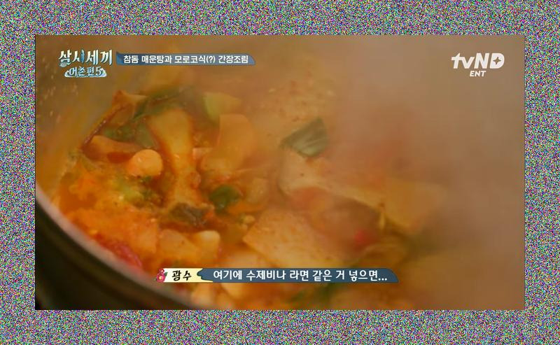 만재도 시절보다 훨씬 강력해진 화력 덕분에 음식은 더욱 완벽하게 익어갑니다. "미디움 정도로만 먹었을 것 같아"라며 과거를 회상하는 모습은 현재의 풍족한 요리 환경에 대한 만족감을 드러냅니다. 그리고 이어서 등장하는 것은 바로 펄펄 끓는 찌개, 아니 매운탕입니다! "이게이 정도 돼야 되거든"이라며 자신감을 보이는 모습에서 이미 맛에 대한 확신이 느껴집니다. 특히 "몸통이 어우, 몸통이!"라며 감탄하는 장면은 생선 한 마리가 통째로 들어간 매운탕의 엄청난 스케일을 짐작하게 합니다. 머리가 해체될 정도로 푹 끓여야 진정한 맛이 우러난다는 말에, 과연 이 매운탕은 어떤 깊은 맛을 선사할지 기대가 됩니다.
