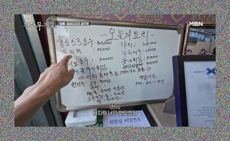 "전현무 씨, 바지락 너무 맛있겠다!" 메뉴판을 훑던 전현무의 눈이 빛납니다. 놀랍게도 사장님은 전현무계획의 열렬한 시청자! "제가 오늘 아침까지도 이 프로를 봤는데. 어머. 아, 정말로요. 그럼요. 열심히 보는 프로입니다."라며 반갑게 맞이해주십니다. 지난 인천 편에서 가게가 소개되지 않은 것에 대한 귀여운 아쉬움까지 내비치시니, 이 중국집에 대한 궁금증은 더욱 커져만 갑니다. 시청자들의 요청으로 인천을 다시 찾았다는 말에 사장님의 얼굴에는 미소가 번집니다. 매일 바뀌는 메뉴, 그 속에는 산동 지방의 다채로운 맛이 숨겨져 있을 것 같습니다. 이런 사장님의 열정과 프로그램에 대한 애정이라면, 분명 평범하지 않은 정통 중화요리를 맛볼 수 있겠죠?